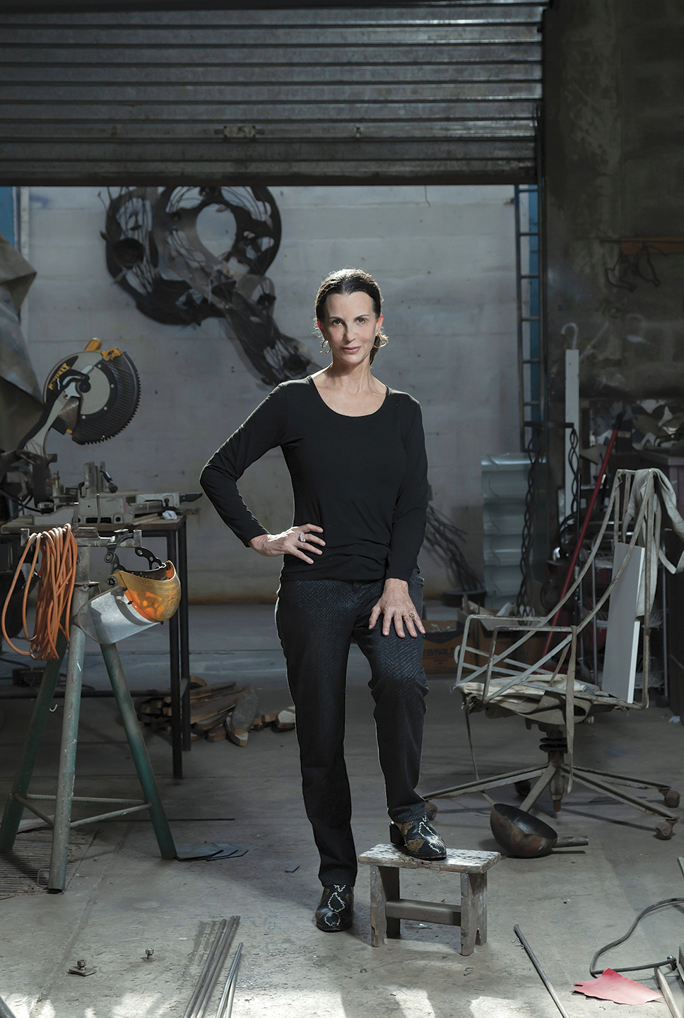 Y es que el ojo solo mira lo que ve: materia. Pero el corazón siente y percibe el mensaje de la obra de Larissa Marangoni. Trozos de metal, mangueras, cadenas y un sinnúmero de elementos comparten espacio con herramientas de todo tipo. Cada cosa está ahí por una razón y cumple una función que, al complementarse, materializa la idea que nace en la mente de esta artista del arte urbano.